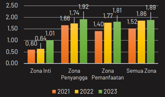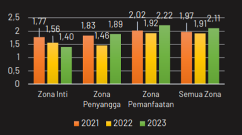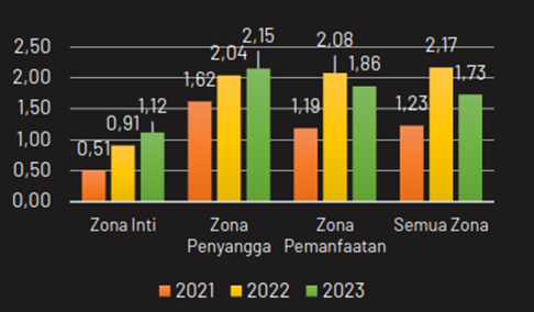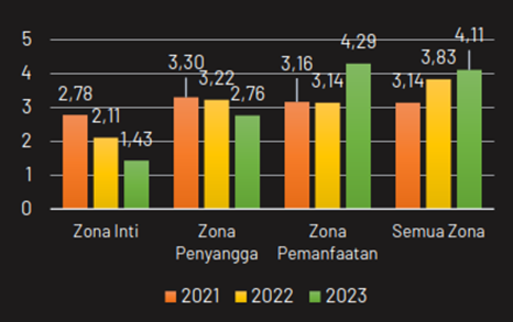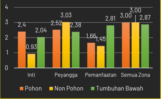 Gambar 23. Perbandingan jumlah temuan jenis di setiap zona.