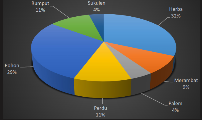 Gambar 25. Persentase jumlah spesies tumbuhan berdasarkan kelompok habitus di PT PLN Nusantara Power UP Indramayu pada tahun 2023.