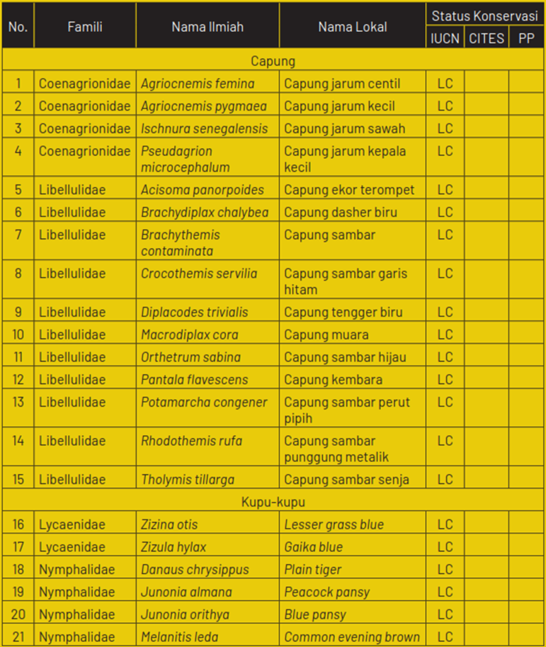 Tabel 4. Status konservasi dan perlindungan jenis Serangga di Kawasan PT PLN NP UP Indramayu