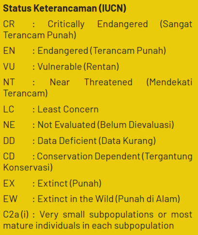 Status Konservasi tumbuhan yang tercatat di PT PLN Nusantara Power UP Indramayu.