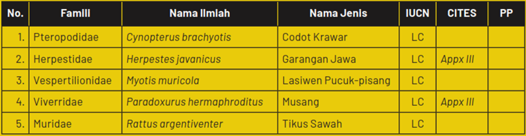 Tabel 1. Status Konservasi dan Perlindungan Jenis Mamalia di Kawasan PT PLN NP UP Indramayu
