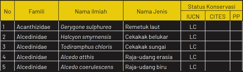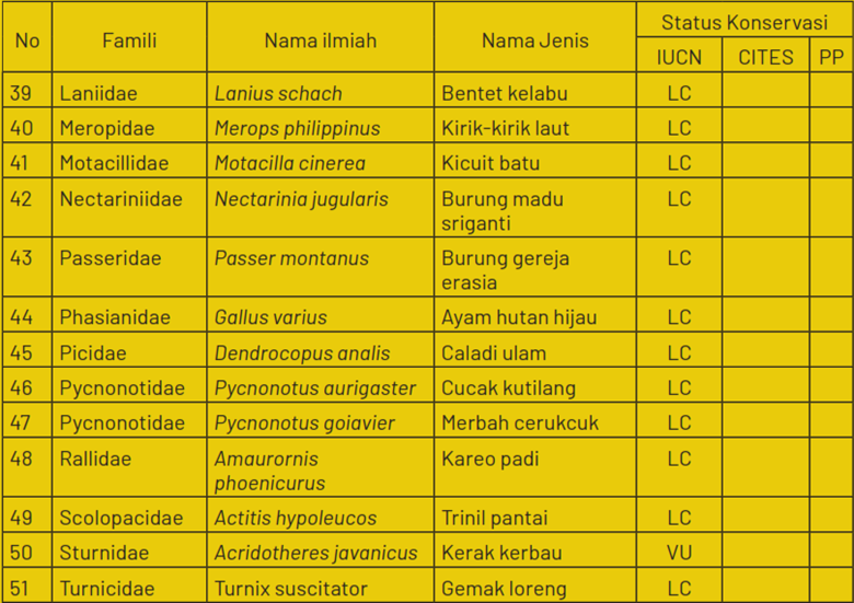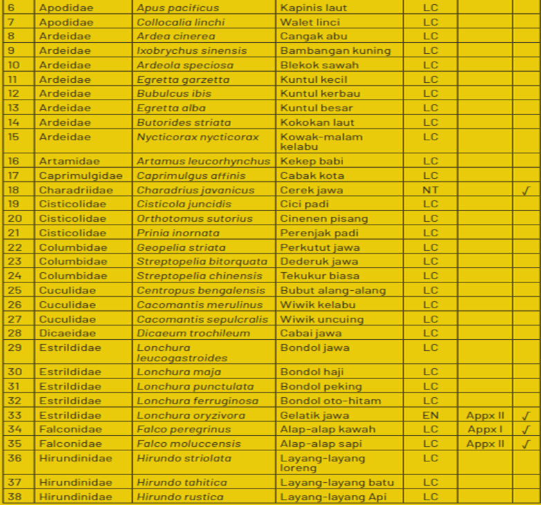 Tabel 2. Status konservasi dan perlindungan jenis Burung di Kawasan PT PLN NP UP Indramayu