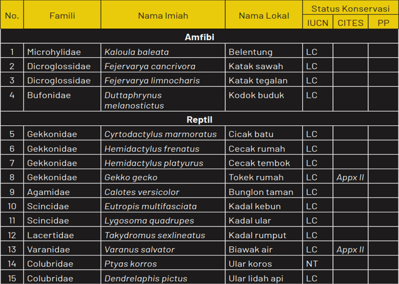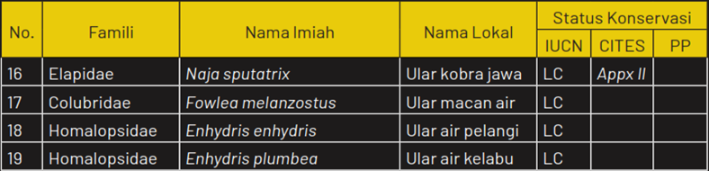 Tabel 3. Status Konservasi dan Perlindungan Jenis Herpetofauna di Kawasan PT PLN UP Indramayu