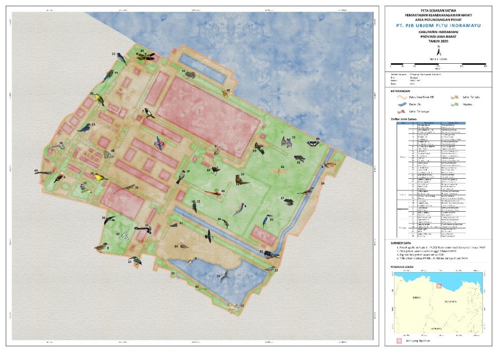 Gambar Peta sebaran satwa di area perlindungan privat PT PJB UBJOM PLTU Indramayu